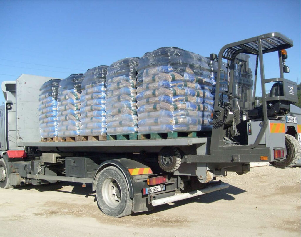 • Granulés en sacs sur palette de 66 sacs de 15 Kg